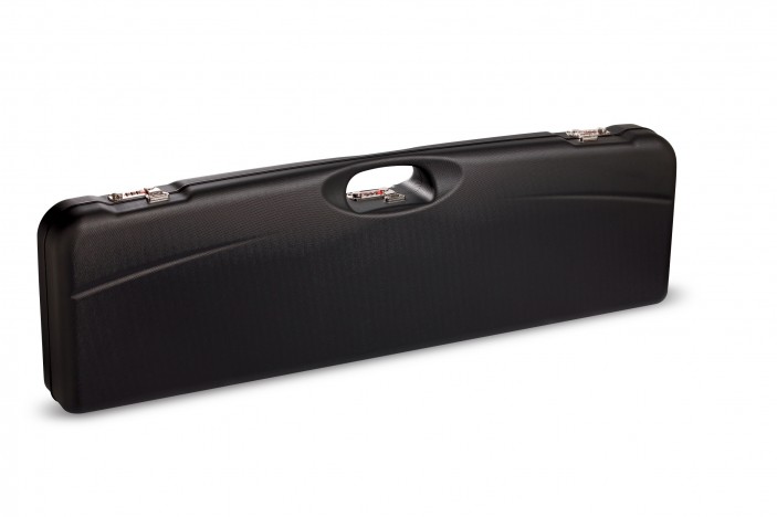 Ultrakompakter, tiefgezogener ABS-Koffer mit Schultergurt und PVC-Rand. Geformtes Innenfutter mit Samt über Schaumstoff; geeignet für eine Bockflinte mit einer Lauflänge bis 92 cm. Ausgestattet mit einer Trennwand zwischen Schaft und Lauf. Mit drei Metall-Zahlenschlössern.
